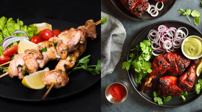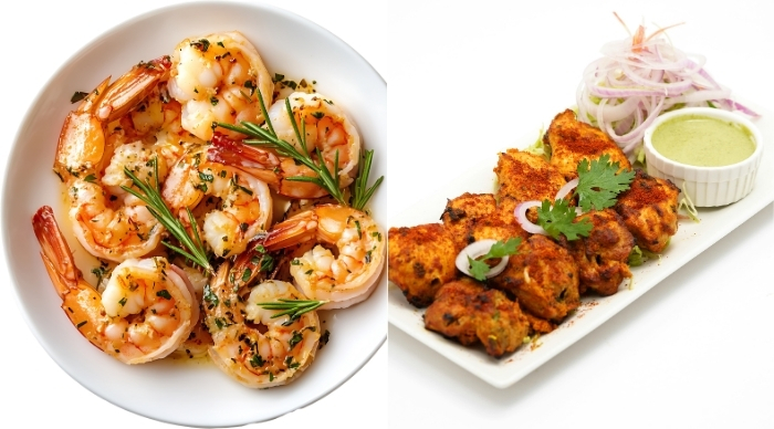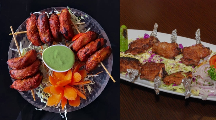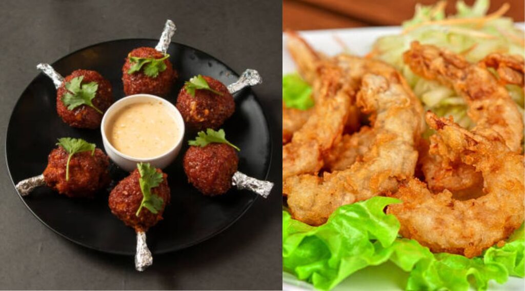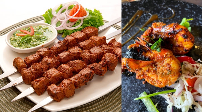 APPETIZERS (NON-VEG) APPETIZERS (NON-VEG) ANGRY WINGS (KOREAN) Fiery Korean-style wings tossed in a bold, spicy sauce for a flavor-packed kick. ANGRY WINGS (AMERICAN) Crispy American-style wings coated in a smoky, tangy hot sauce with a classic fiery bite. BUTTER GARLIC PRAWNS Juicy prawns sautéed in rich butter and aromatic garlic for a flavorful delight. AMYRA ZESTY CHICKEN Tender chicken tossed in a vibrant blend of spices and zesty flavors for a bold taste. CLASSIC FISH & CHIPS Golden fried fish served with crispy chips for a timeless comfort classic. CHICKEN MAJESTIC Spicy, tangy chicken strips tossed with aromatic herbs for a royal treat. CHILLI CHICKEN Crispy chicken tossed in a spicy, tangy chilli sauce with vibrant flavors. KUNG PAO CHICKEN Stir-fried chicken with crunchy peanuts, vegetables, and a spicy-sweet Kung Pao sauce. HYDRABADI CHICKEN 65 Crispy chicken tossed in a spicy, tangy chilli sauce with vibrant flavors. DEVILS CHICKEN A spicy, tangy chicken dish packed with bold flavors and a fiery kick. DRUMS OF HEAVEN / CHICKEN LOLLIPOP Crispy, juicy chicken lollipops tossed in a spicy, flavorful sauce. DYNAMITE PRAWNS Golden-fried prawns coated in a creamy, spicy sauce for an explosive taste. CHICKEN TIKKA (LASSONI / MIRCHI/ MALAI) Succulent chicken skewers marinated in rich spices and grilled to smoky perfection. Tandoori Murg (Chilli Garlic / Regular) Juicy, spiced chicken marinated in yogurt and roasted in a traditional clay oven for smoky flavor. NAWABI KALMI KABAB Tender chicken drumsticks marinated in royal spices and grilled to perfection. PESHWARI TANGADI KABAB Juicy chicken legs infused with aromatic Peshwari flavors and slow-cooked in a tandoor. TAWA MUTTON CHOPS Succulent mutton chops pan-seared with robust spices for a rich, flavorful bite. SMOKED MUTTON SHEEKH BHATTIWALI Juicy minced mutton skewers infused with smoky bhatti flavors and aromatic spices. TURKISH ADANA WITH ZATAR BREAD Spiced minced meat kebabs served with warm, herbed Zatar bread for an authentic Turkish taste. LAKHNAVI MUTTON GALOUTI KABAB Melt-in-the-mouth mutton kebabs delicately spiced with royal Awadhi flavors. CHICKEN SEEKH KABAB Juicy minced chicken skewers seasoned with aromatic spices and grilled to perfection. TANDOORI GARLIC KING PRAWNS Succulent king prawns marinated in garlic and spices, roasted in a smoky tandoor. MANGLORE PRAWNS GHEE ROAST Spicy coastal-style prawns roasted in rich ghee with bold Mangalorean flavors. CHILLI PRAWNS/SCHEZWAN PRAWNS Crispy prawns tossed in a fiery chilli-Schezwan sauce with a perfect Indo-Chinese twist. SPICY TAWA FISH Fresh fish seared on a tawa with a punch of fiery spices. APOLLO FISH Crispy fried fish tossed in a tangy, spicy Hyderabadi-style masala. LASOONI FISH TIKKA Tender fish cubes marinated with garlic and spices, grilled to smoky perfection. ACHARI FISH TIKKA Juicy fish tikka infused with tangy pickled spices for a zesty twist.