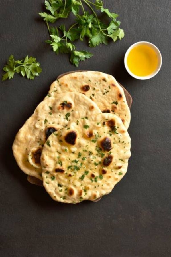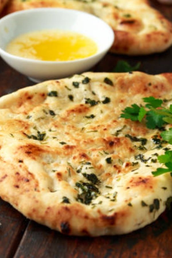Classic naan topped with fresh garlic and herbs, with an optional buttery finish.